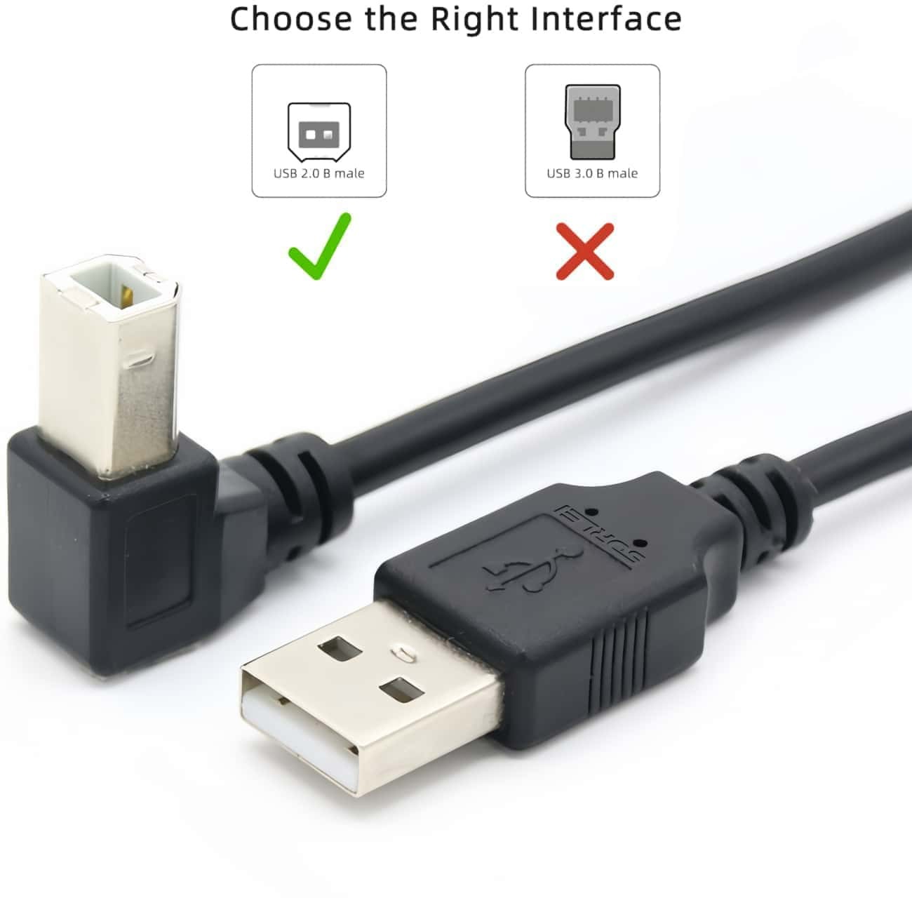 ⚡90 Deg USB to printer extension code is with one end: USB 2.0 A Male , Another end: 90 degree B Male (V2.0 plug type A to USB plug type B).