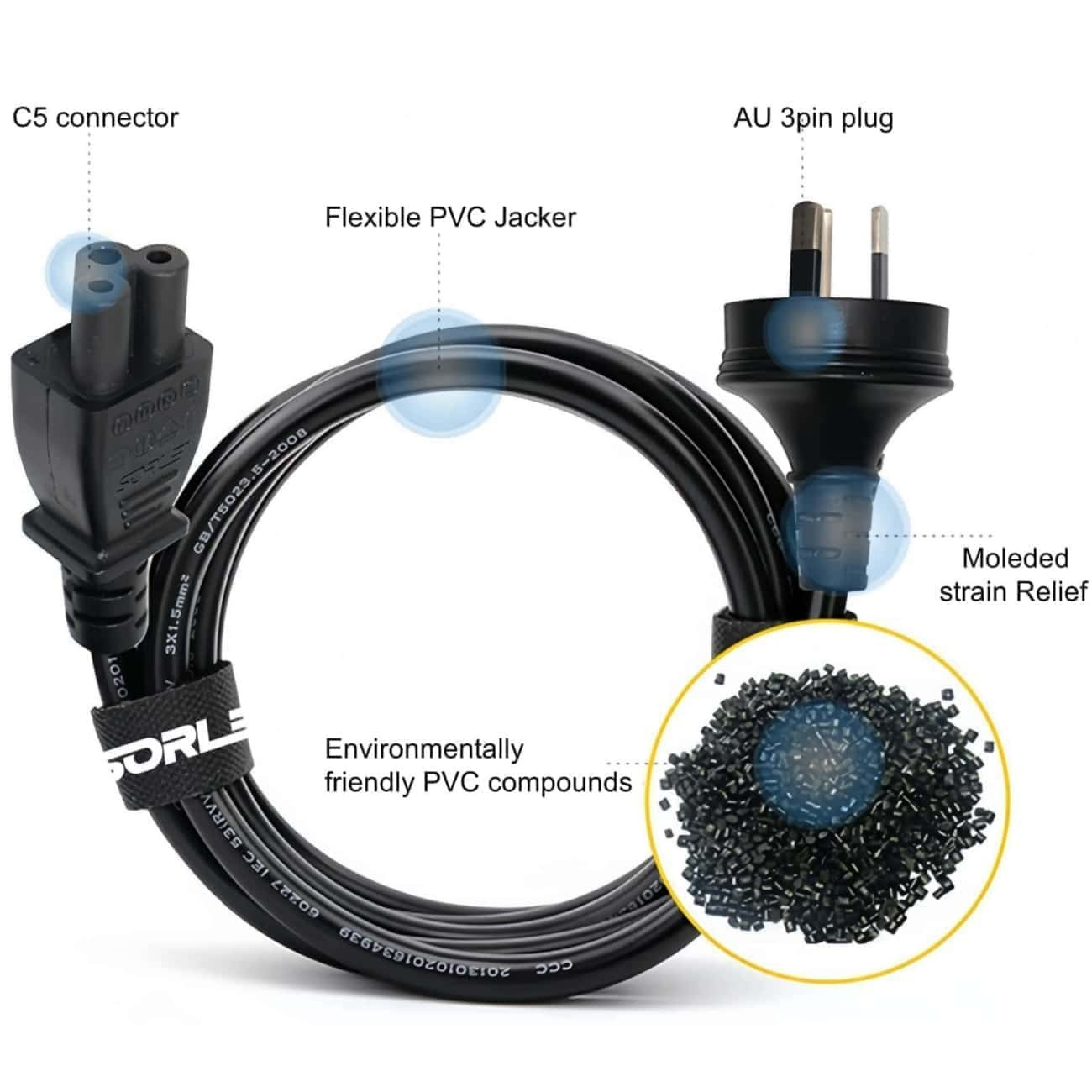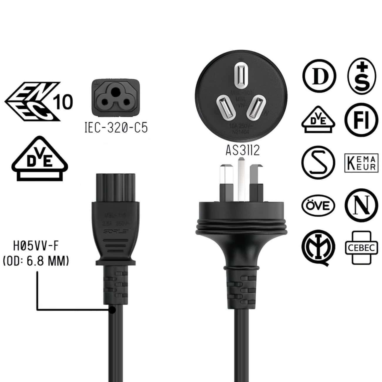 ●Product name:SAA Approval 3Pin Australian C5 Extension Cord.