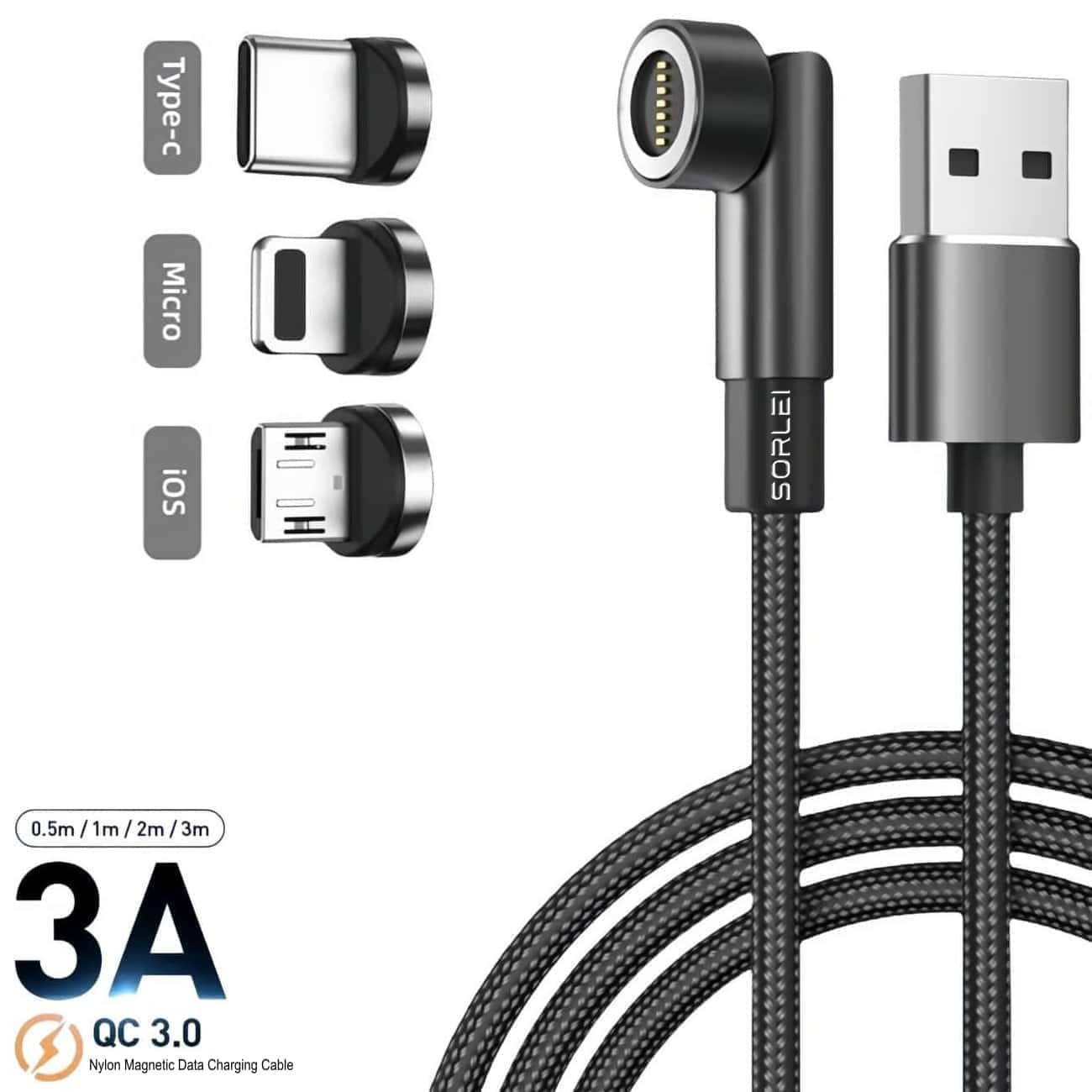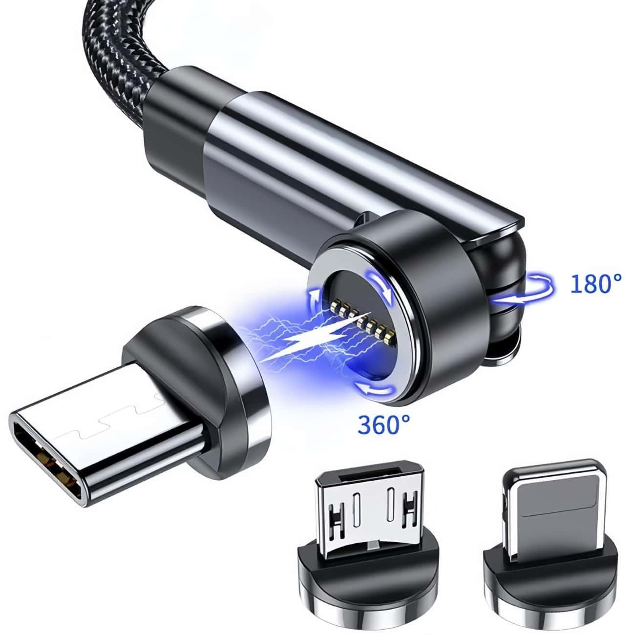 ⚡【360°+180 rotating magnetic head】:540 degree auto-connect magnet plug in and out freely. Inserting the magnetic adapter at the charging interface of the smartphone can prevent dust from sticking and reducing abrasion during inserting or pulling out the cable, prolonging the life of your device.