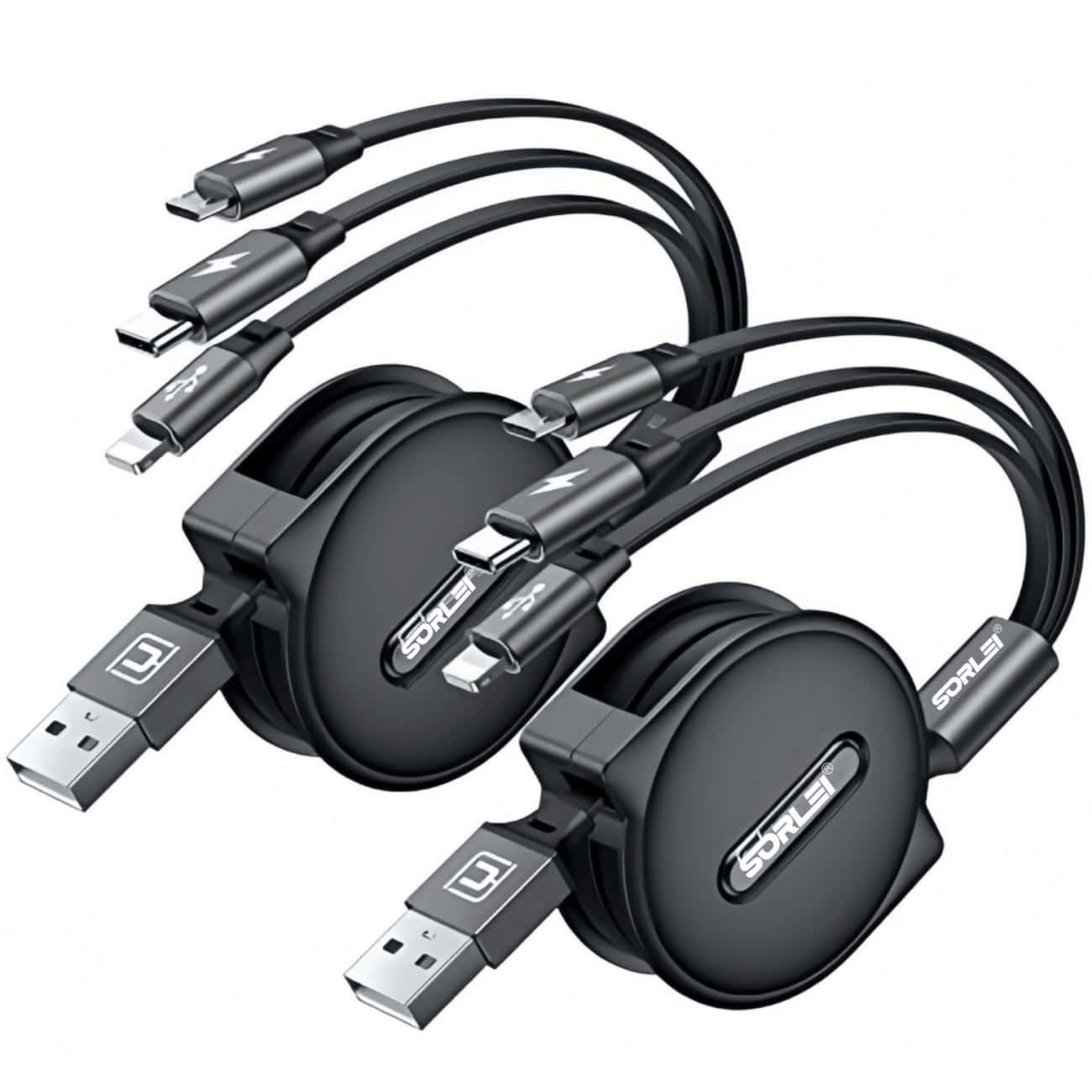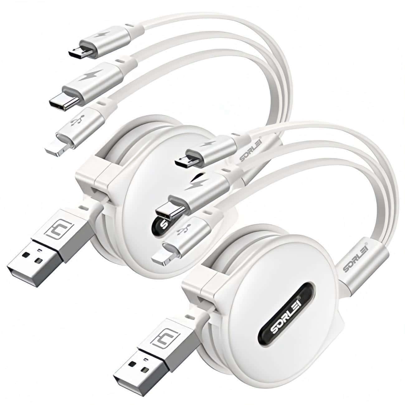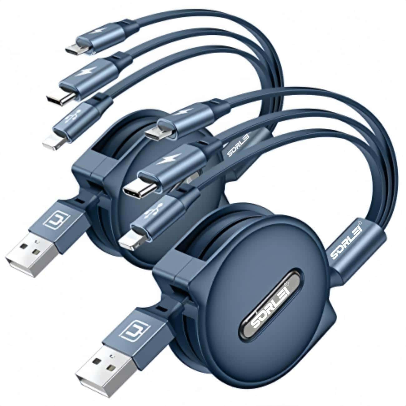 ⚡ 4ft/120cm is perfect length for long distance charging, 3-in-1 retractable design, makes the cord portable and only need one cable when you are on a business trip or traveling.