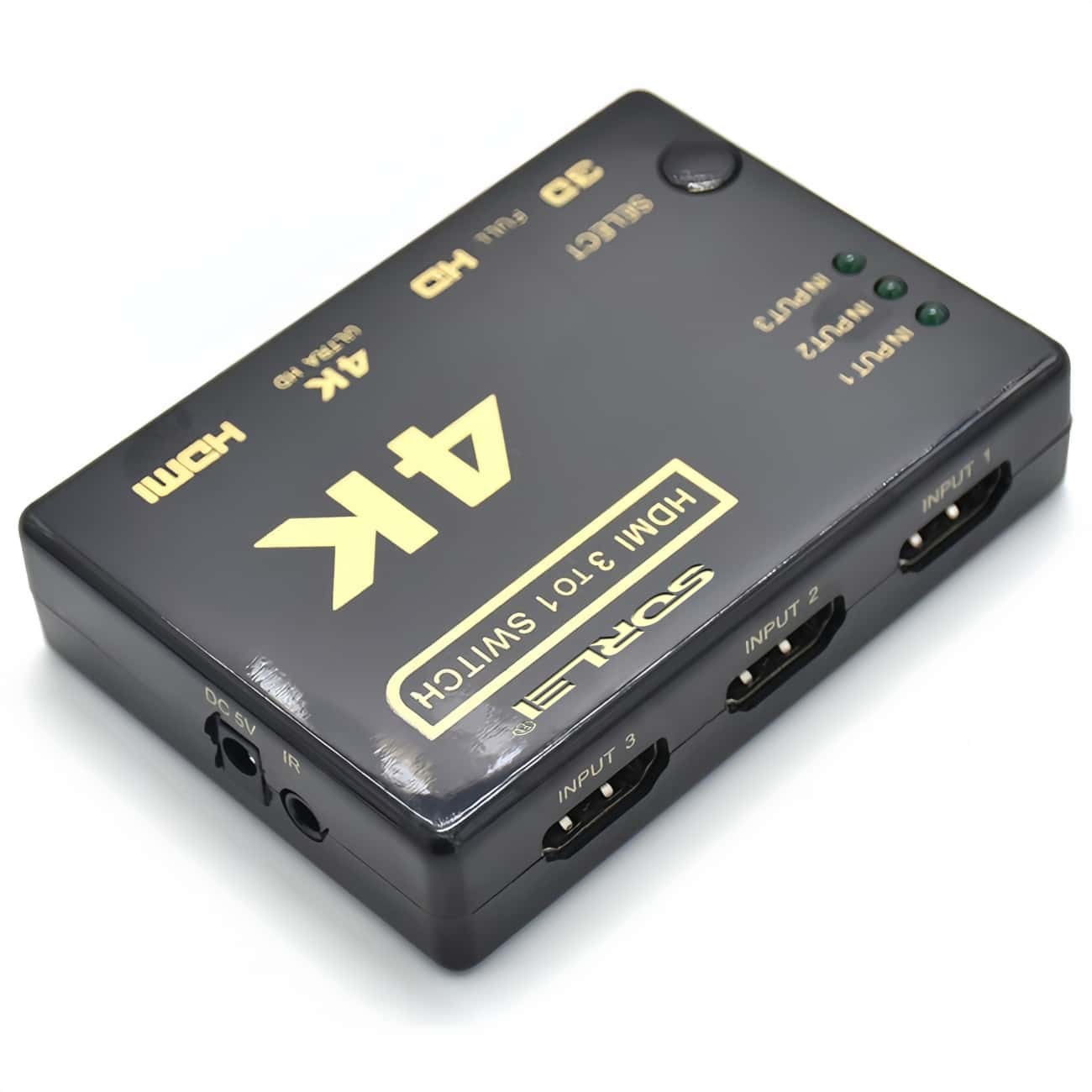 3 Port HDMI Switch Adapter nickel plating 1080P 3D 3 in 1 Out 3x1 HDMI Switcher Converter Box with IR Remote Control for PS5 PS4 Xbox Apple