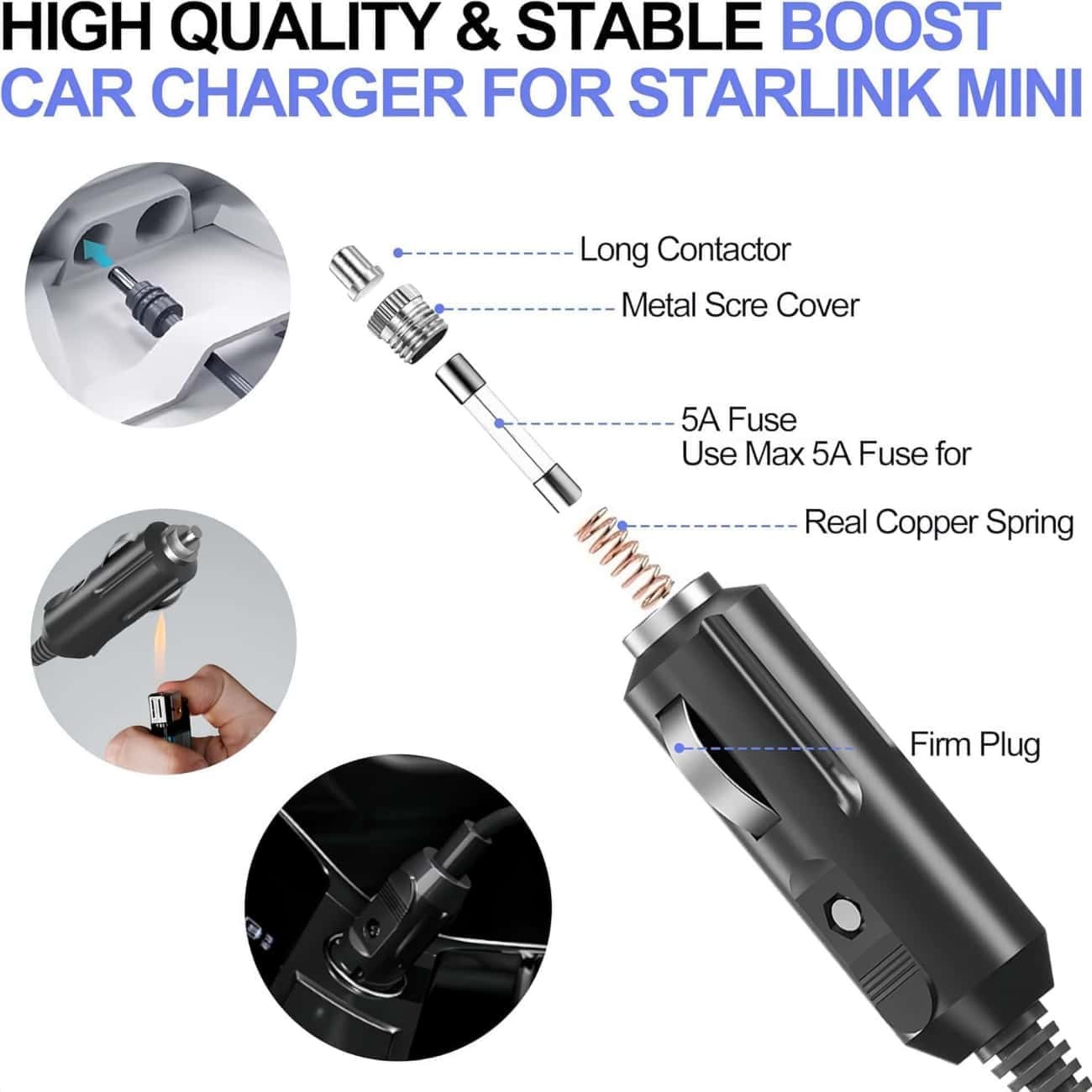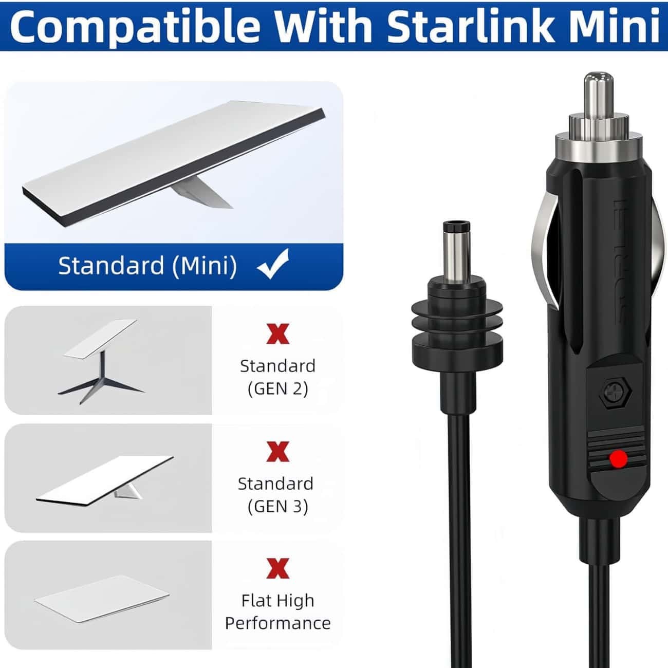 ⚡Starlink mini 12V power cable is suitable for cars, trucks, buses, trucks, boats, etc. with cigarette lighter sockets to meet the needs of different users. The small size does not take up space, improving the convenience of outdoor use. Please use it with the engine started to avoid battery depletion in the car!