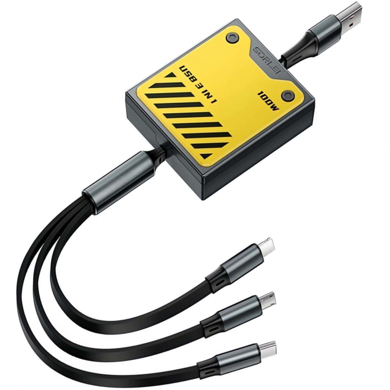 ● Applicable models:Universally compatible for iPhone, Micro-USB & Type-C devices, it has 3 different ports to USB cable for your most needs, it can charge 3 devices at the same time.