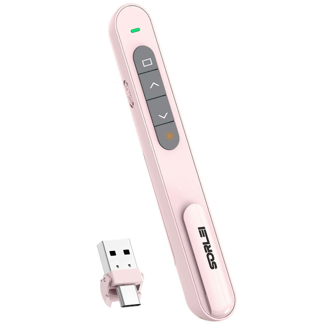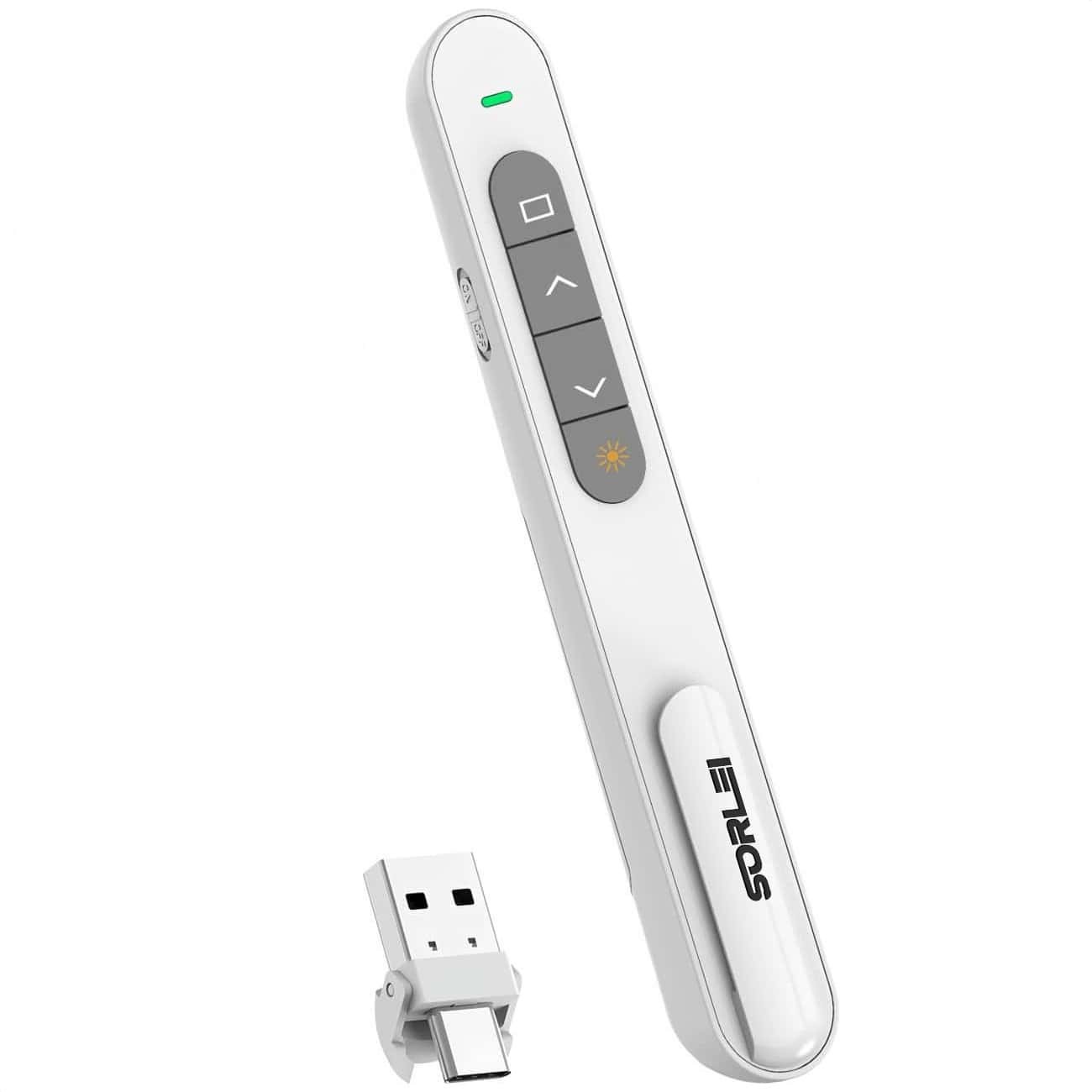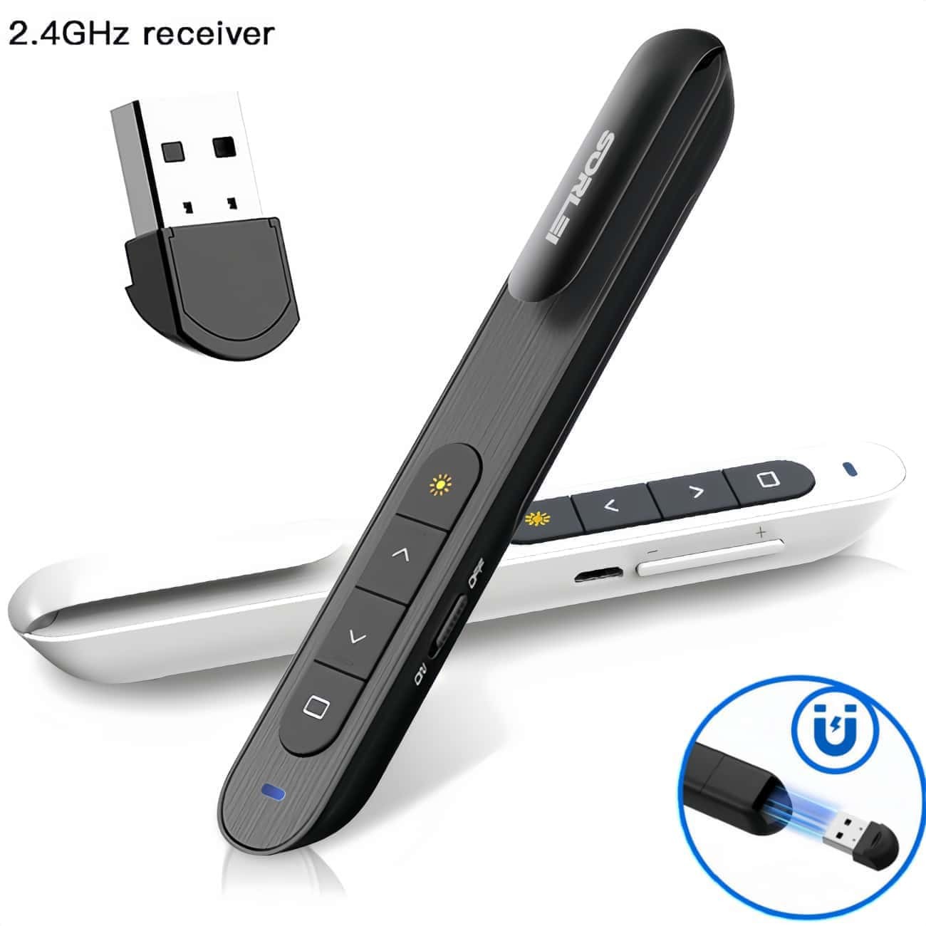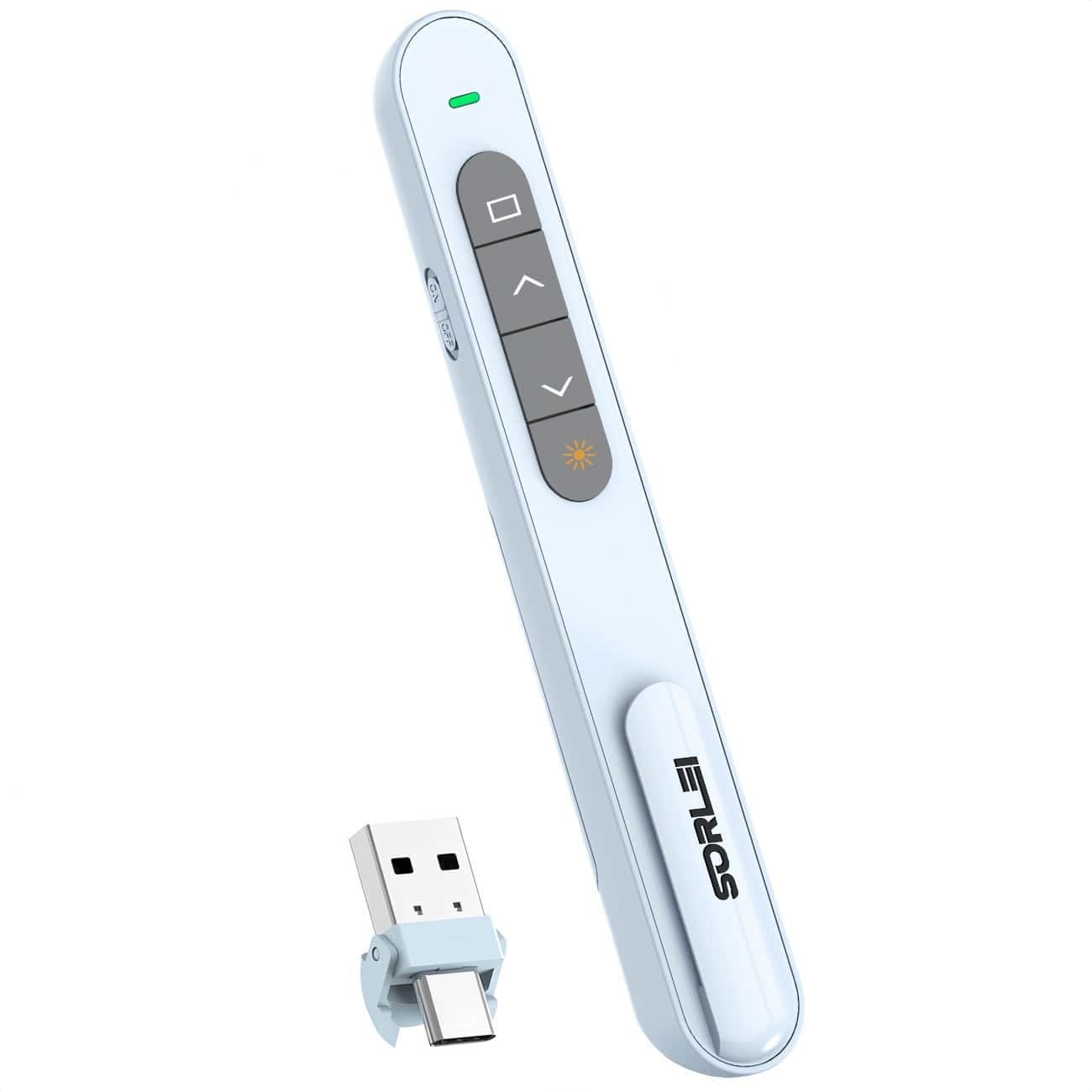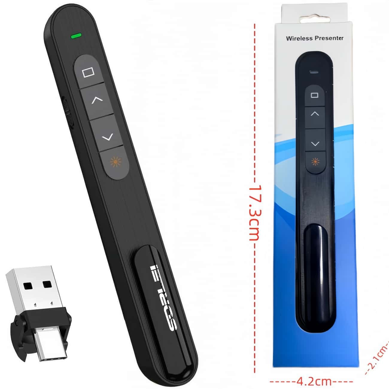 ⚡The Professional Control PPT Presenter Clicker features a wireless RF 2.4G connection, a laser distance of over 200 meters, and a compact size of 138*23*13mm with a lightweight design at 21g.