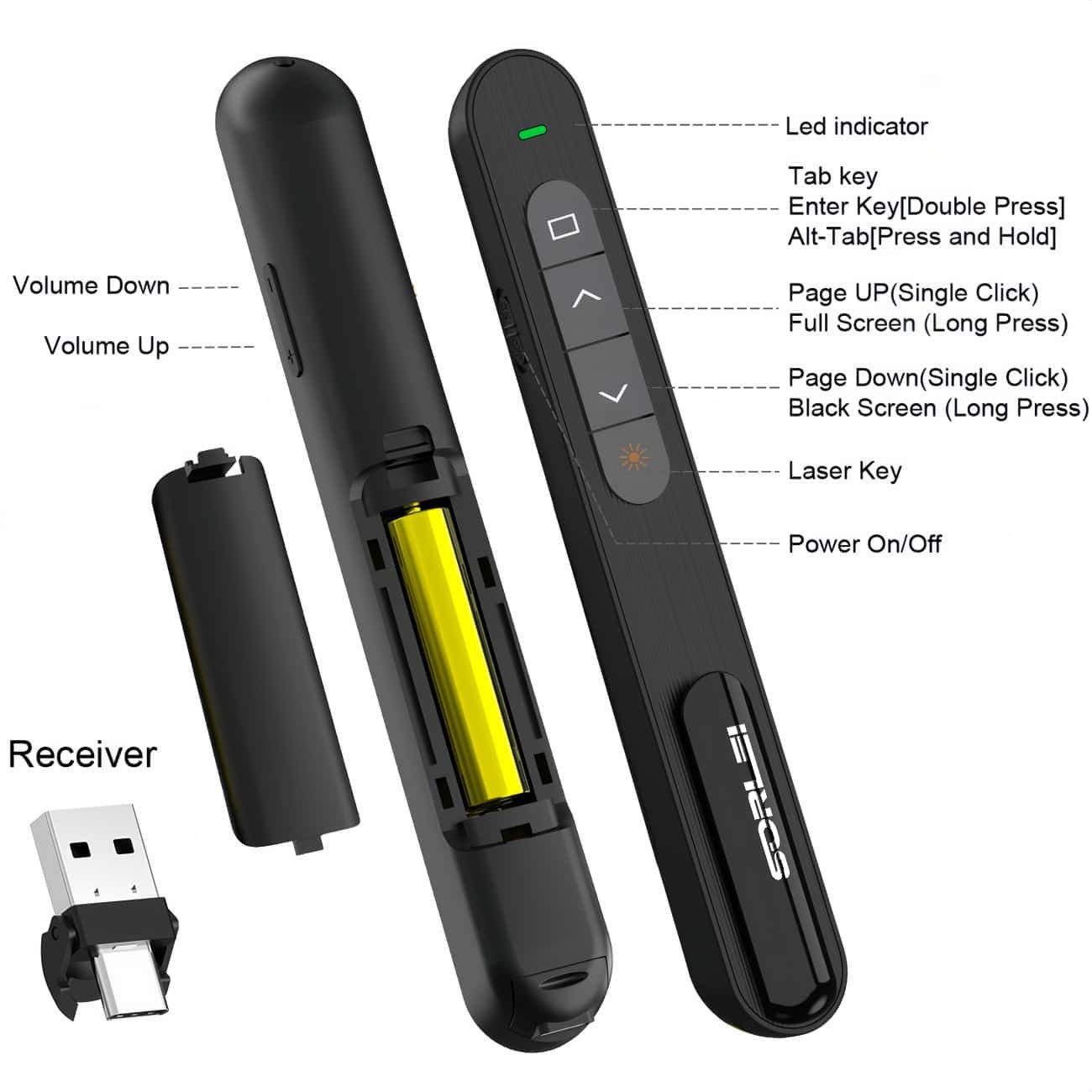 ⚡1 x Wireless Presenter Remote/1x wireless receiver/1x user manual.
