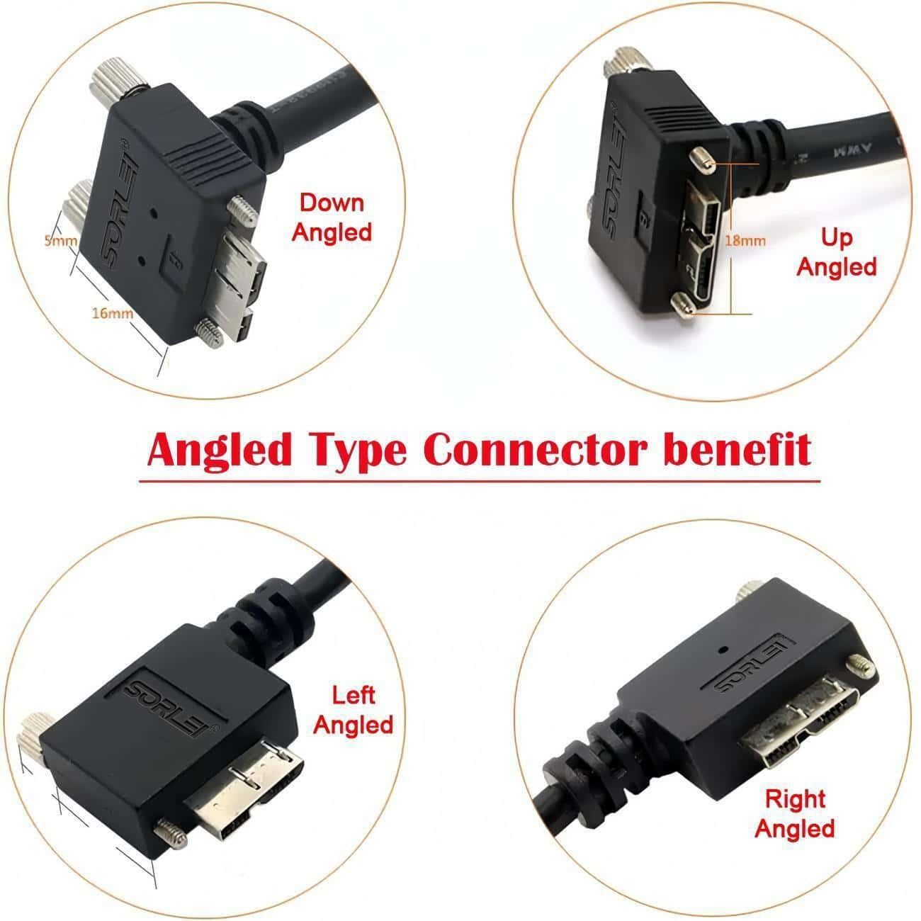 ●Connector2: USB 3.0 Micro B type male with Screw and angled 90 degree.