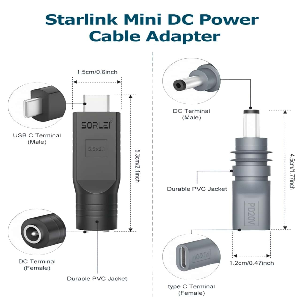 ⚡【Make Charging Simple】This adapter can convert your Starlink Mini power cable DC interface to USB C interface, allowing you to charge your Starlink Mini anytime, anywhere using a USB C charger or power bank.