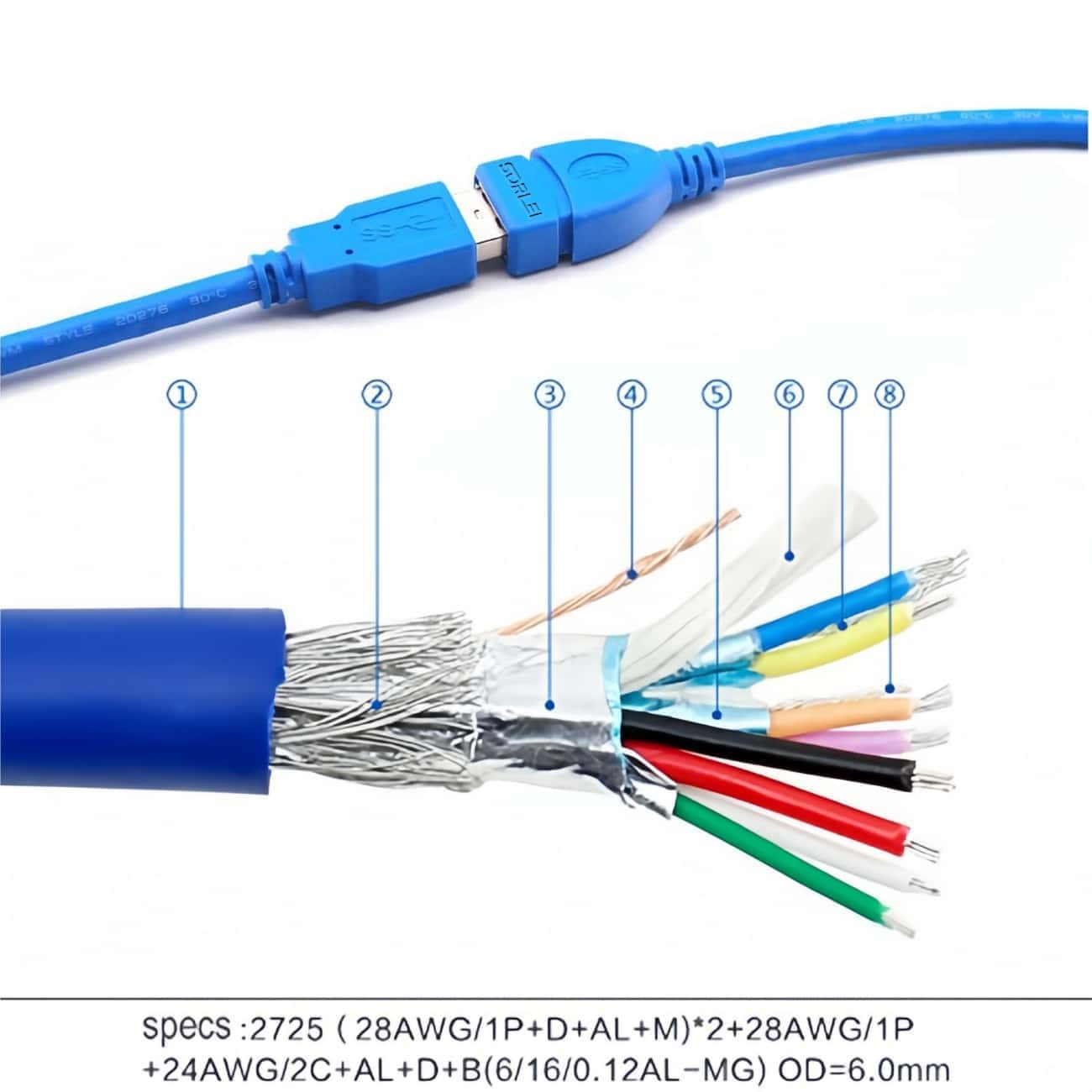 ●Product interface: USB A male/female Product color: blue.
