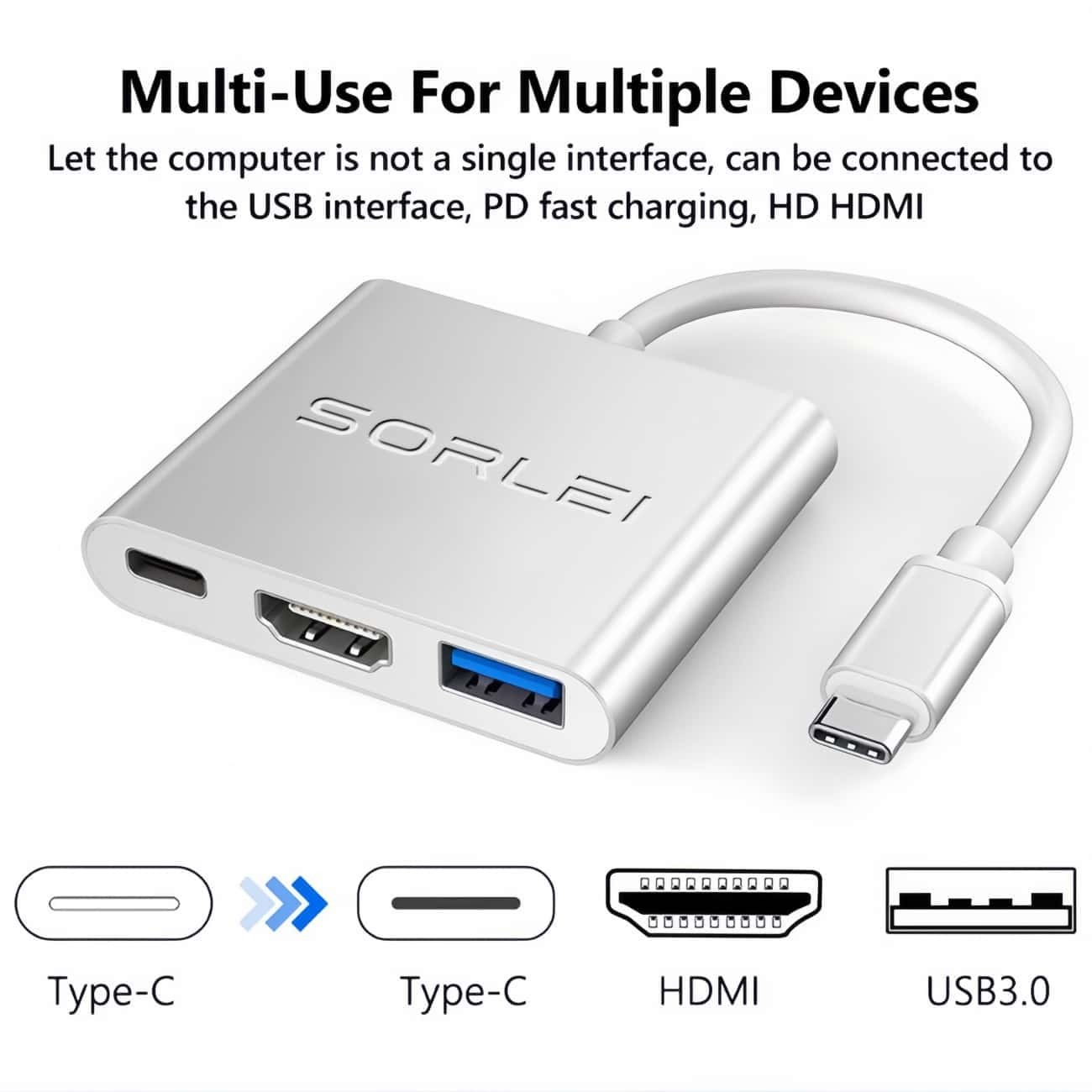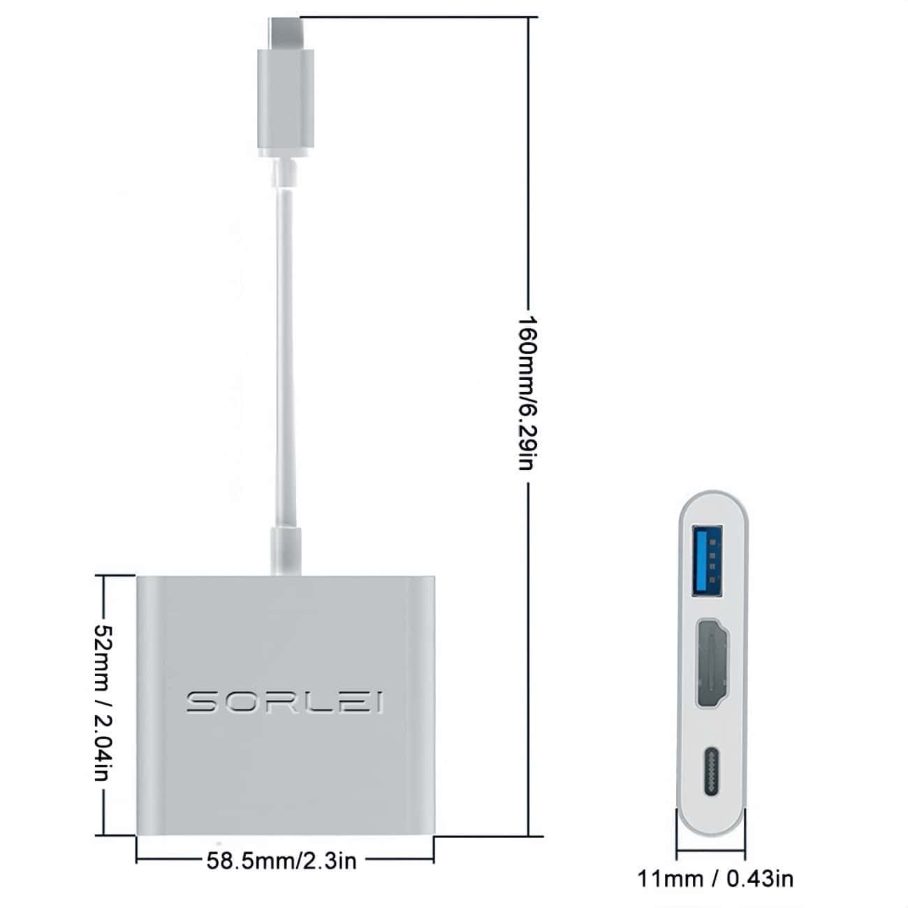 ●Ports contained:HDTV (female) + USB A 3.0 (female) + USB-C (female) For Charging Only.