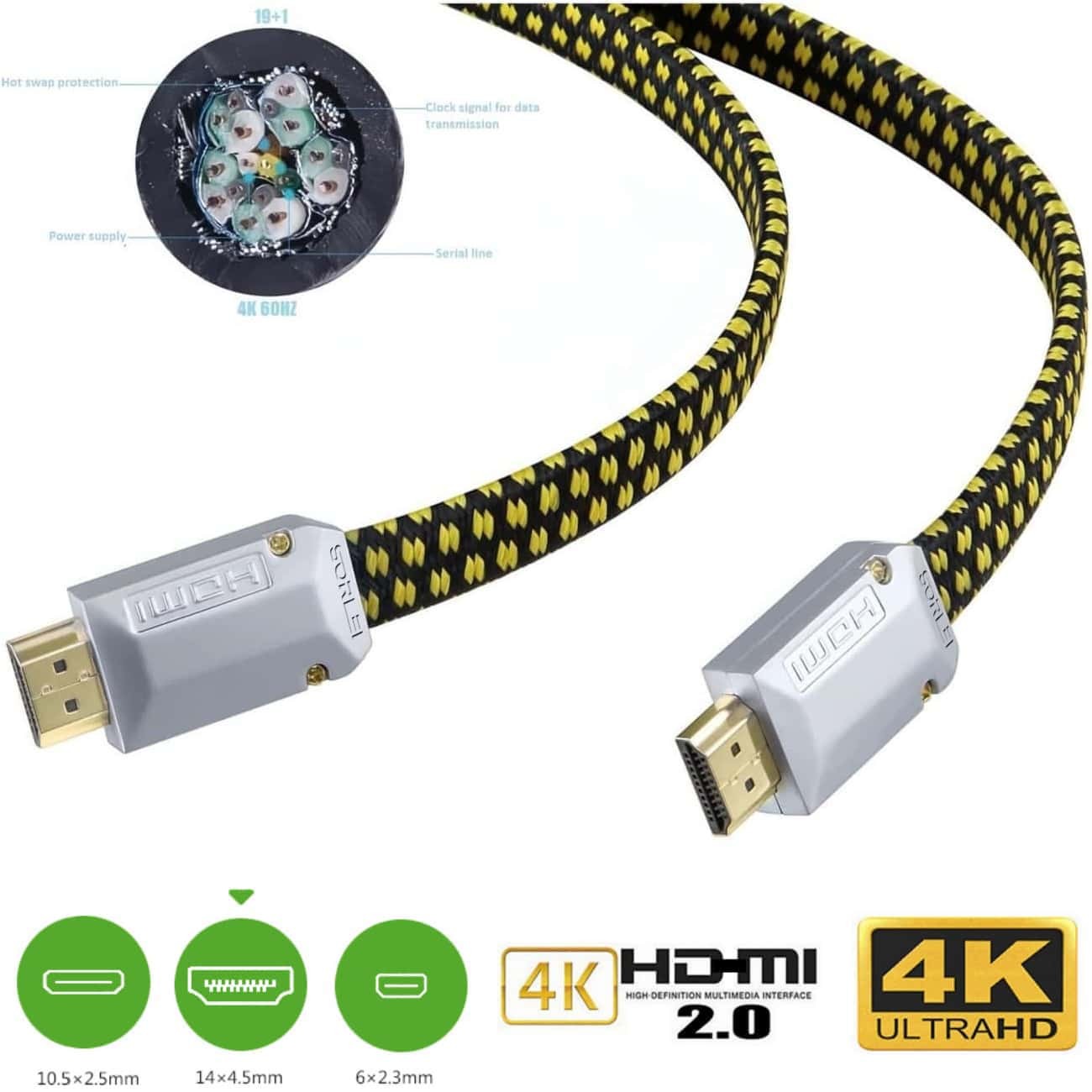 ⚡4K HDMI Cable : HDMI cables support Ultra HD 4K(2160p), QHD 2K(1440P), HDCP 2.2, including Audio Return Channel(ARC), Dolby Atmos, Dolby TrueHD 7.1 audio and 3D vitural effect, enjoy full HD TV sound quality while experiencing deep colors and high-resolution images, provides you the visual experience of ultra high definition.