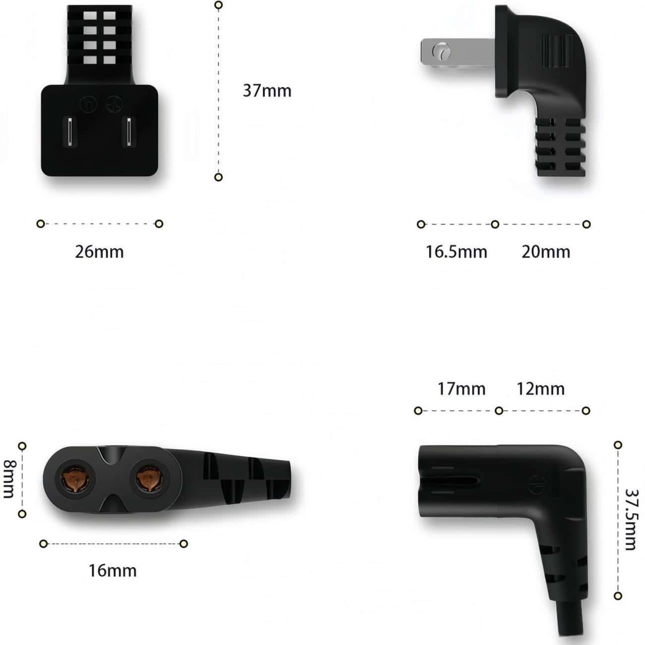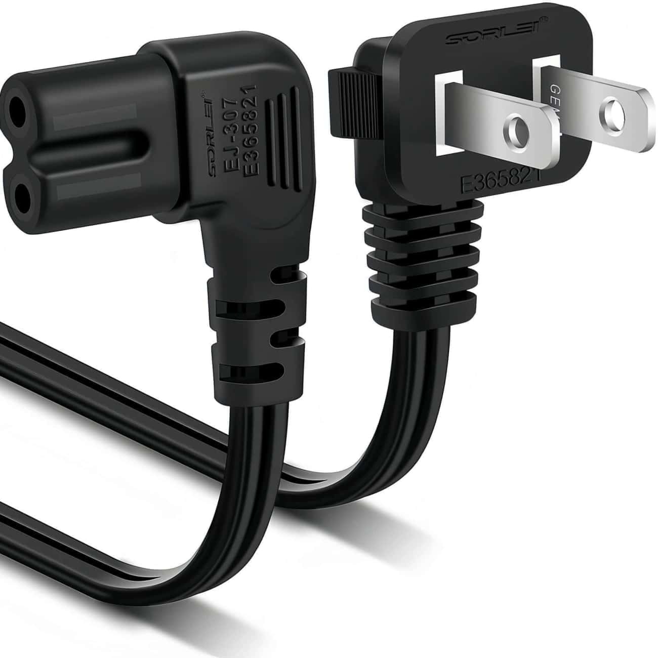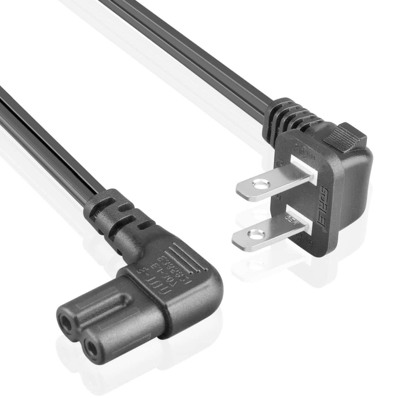 Universal 2 Prong Angled 18 AWG Power Cord - NEMA 1-15P to IEC320 C7 Figure 8 Shotgun Connector AC Power Supply Cable Wire Socket Plug Jack