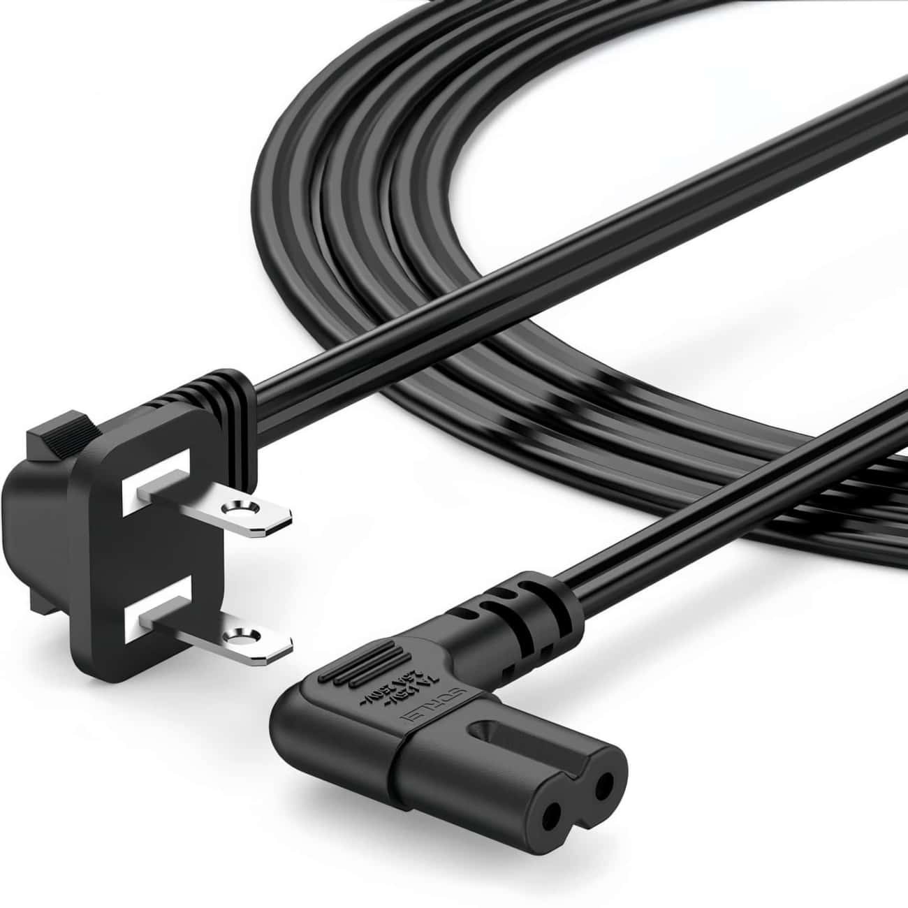 ●[CONNECTOR] - Bend tested 90 degree right angle 2-slot IEC 60320-R C7 (figure 8 plug) non polarized power cord. Rated AC 7A 125V (2.5A 250V). ●Space saver non-slip design TV plug is ideal for tight spaces behind TVs.