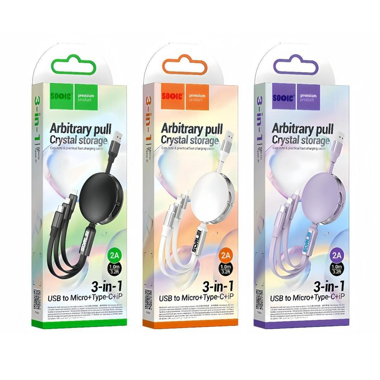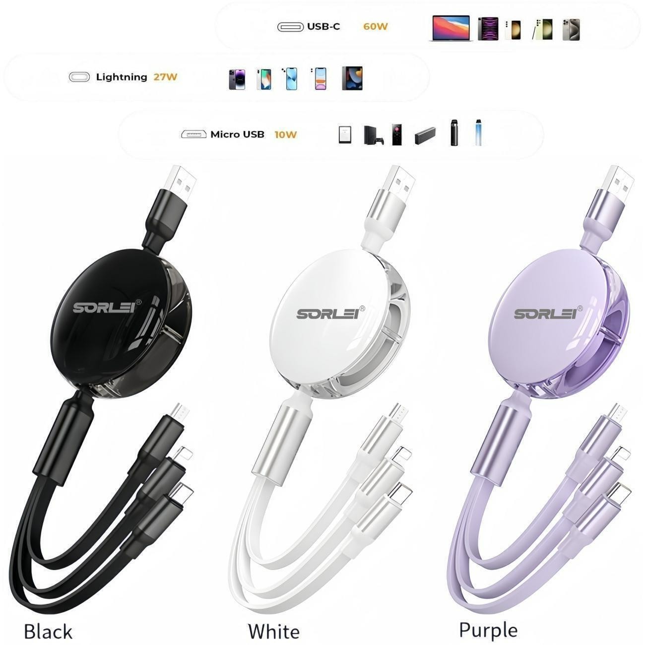 ● Applicable models:Universally compatible for iPhone, Micro-USB & Type-C devices, it has 3 different ports to USB cable for your most needs, it can charge 3 devices at the same time.