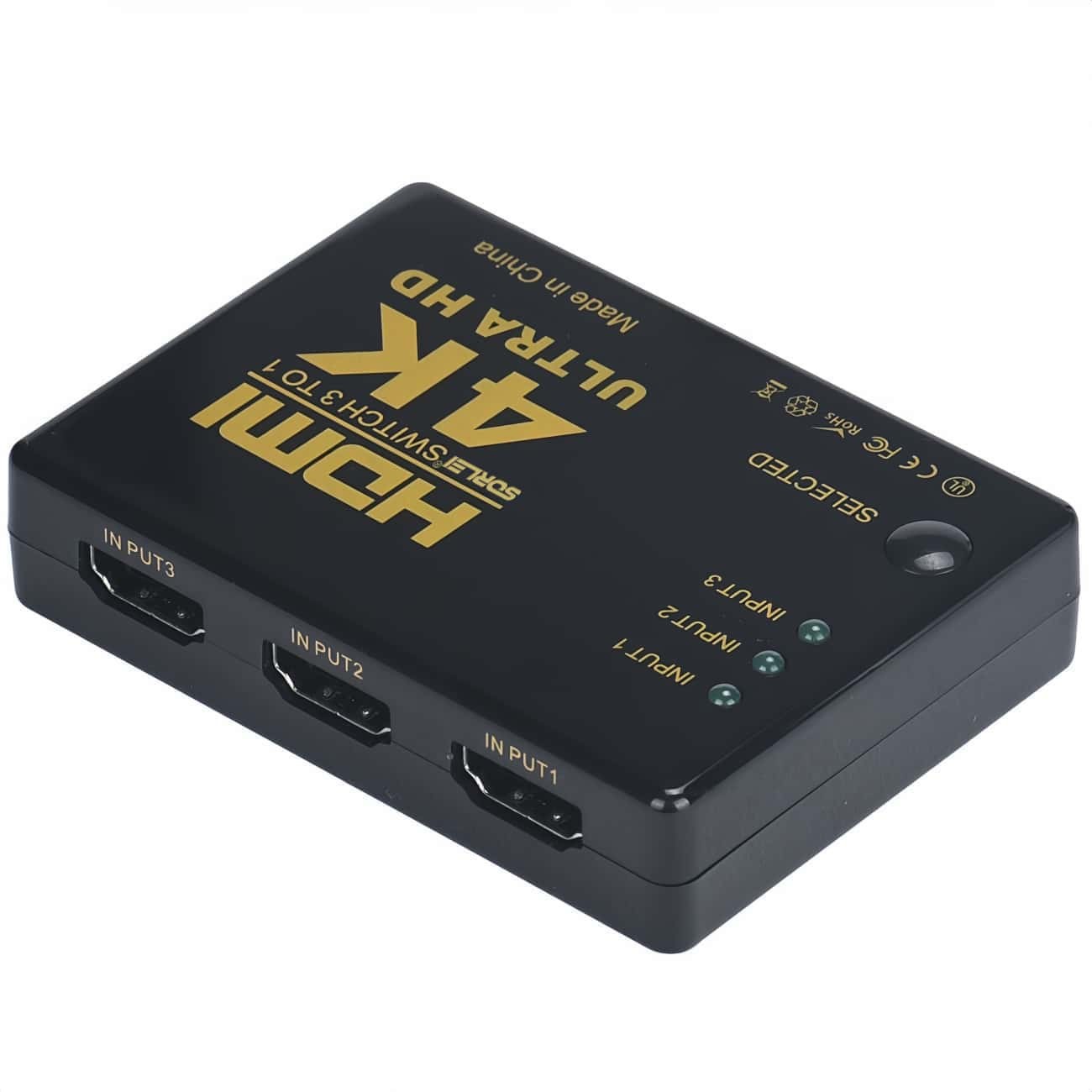Plastic nickel plating 3 Port Ultra HD 4K HDMI Switch 3 in 1 Out HDMI Video Switcher Switch 3x1 Support 3D IR Remote