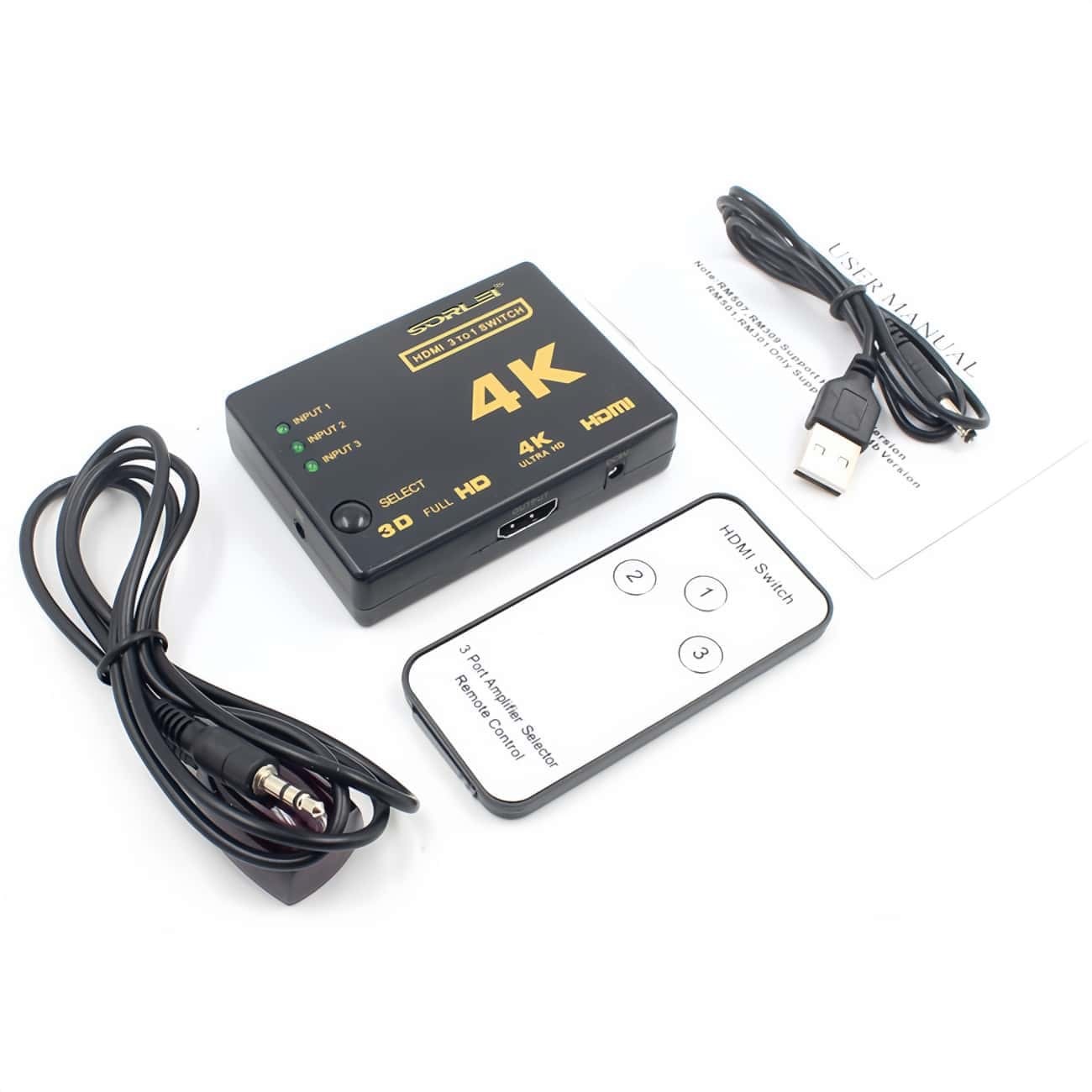 1 HDMI switcher, 1 remote control, 1 blister pack, 1 infrared receiver (optional), 1 USB power cable (optional).