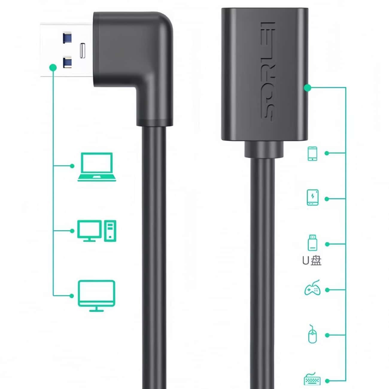 5.90 Degree USB3.0 Extension Cable is perfect for connecting in tight spaces. This design allows for better cable management.